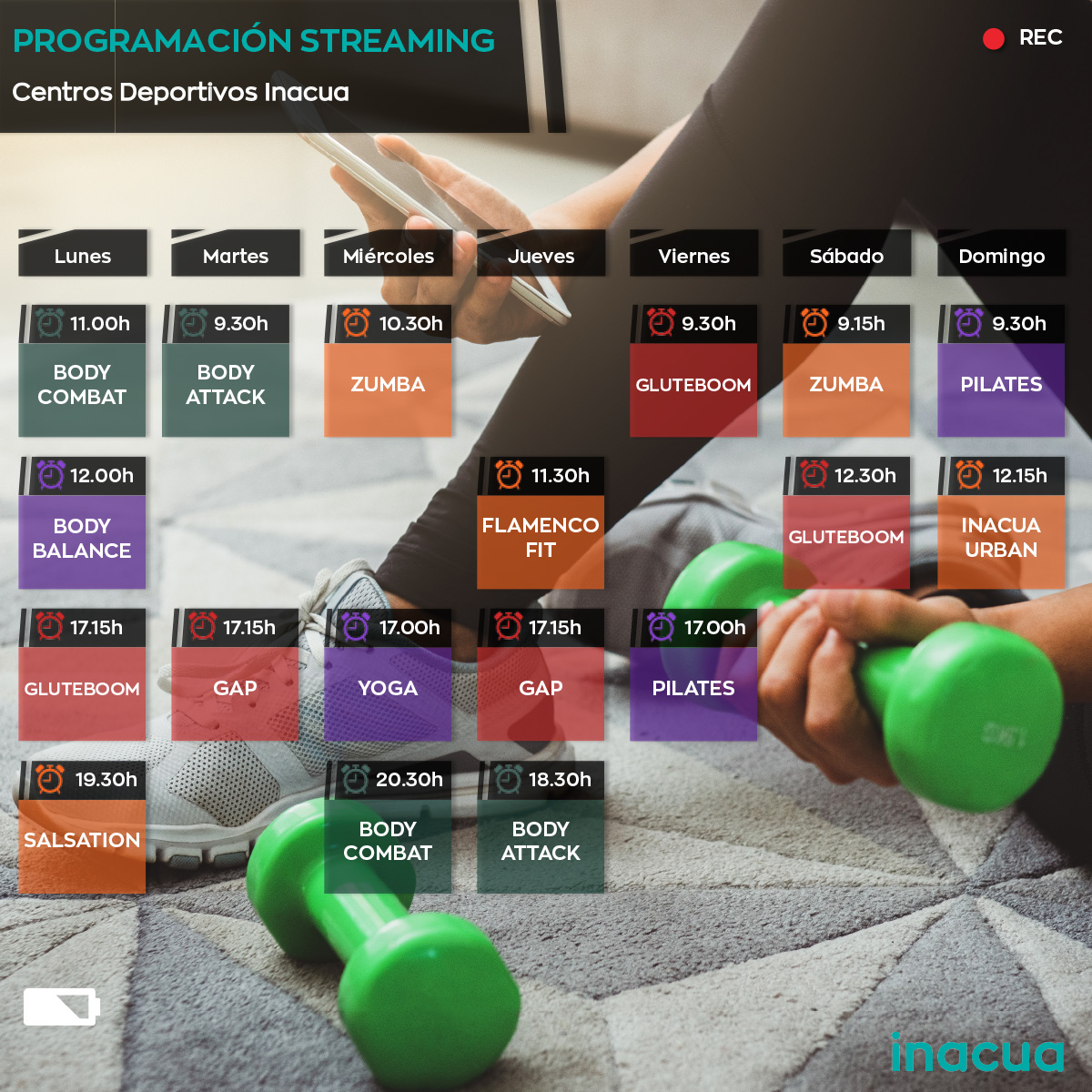 Podrás consultar el aforo antes de venir a entrenar o disfrutar de tus clases favoritas también desde casa con nuestro servicio Inacua Streaming.